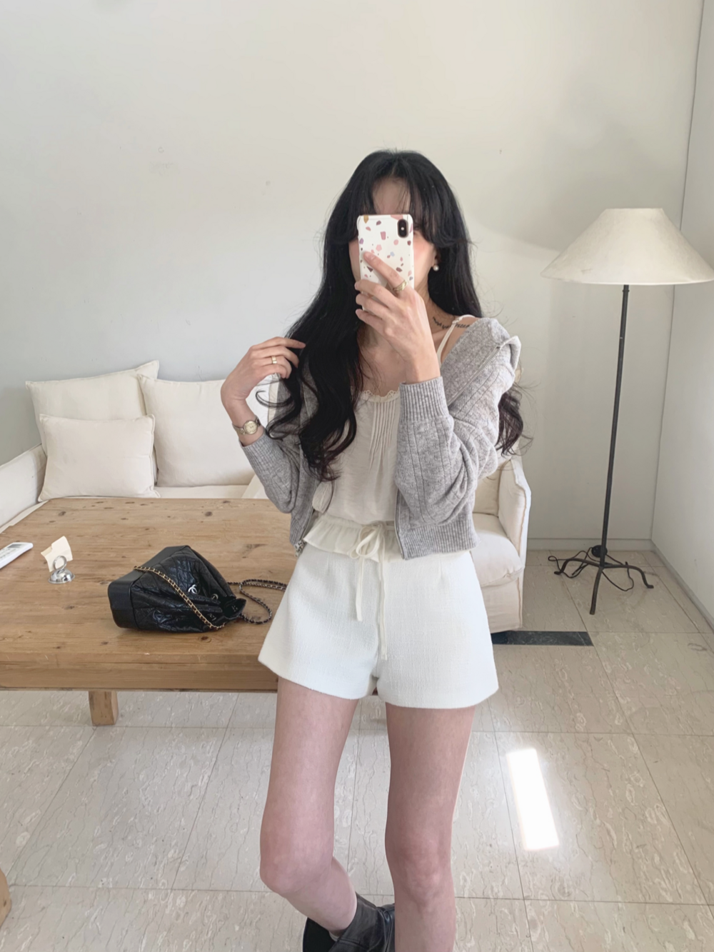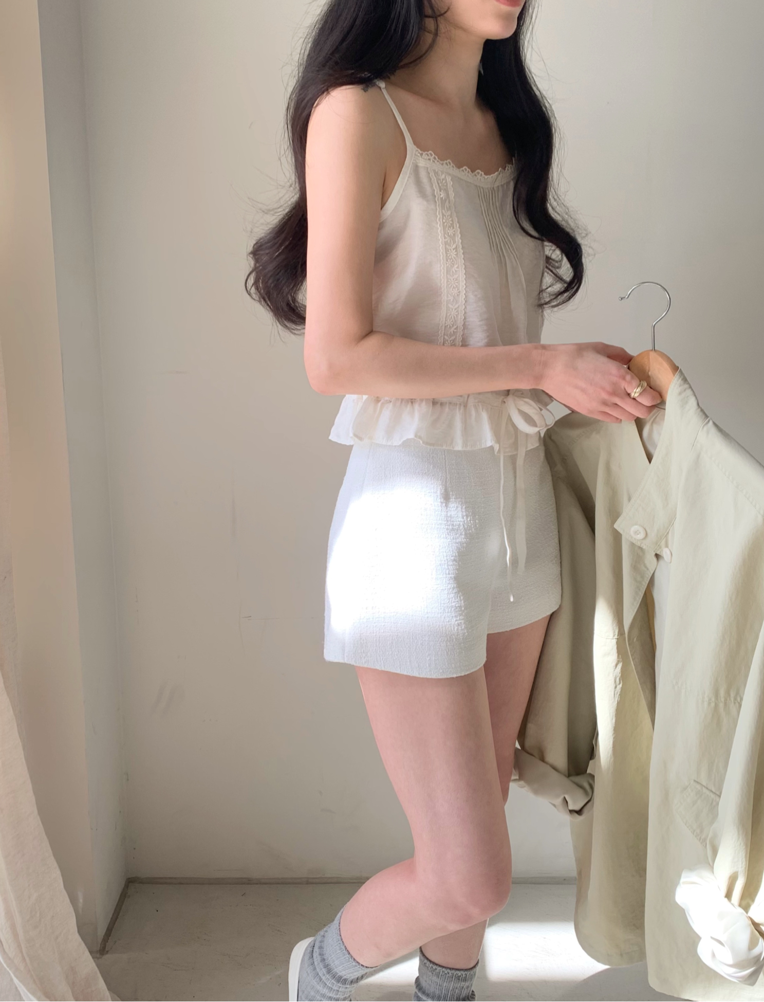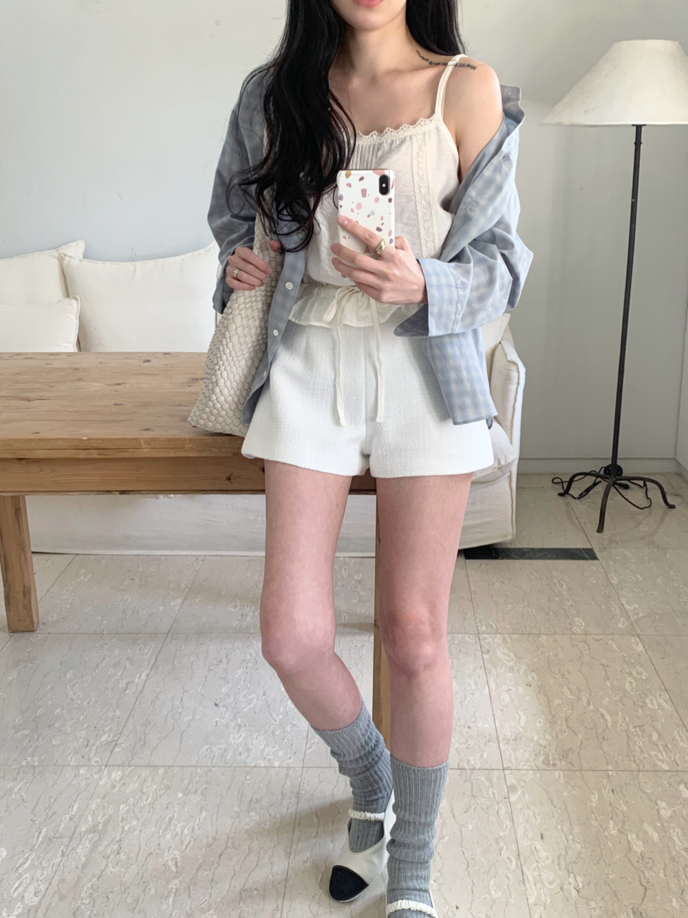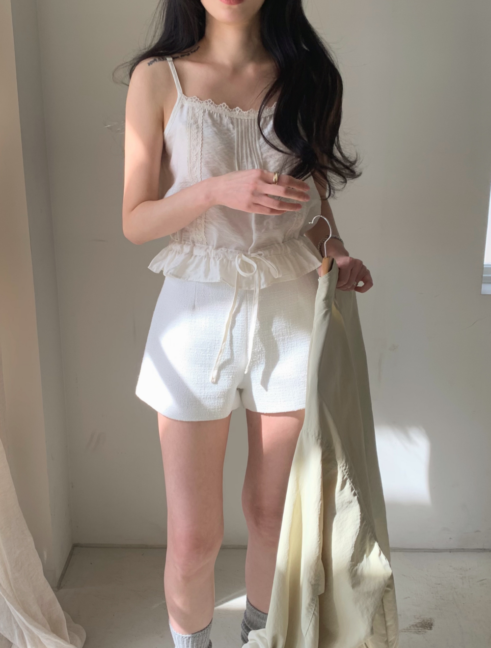 레이스 트리밍과 하단에 사이즈 조절이 가능한 리본 스트링이 더해져