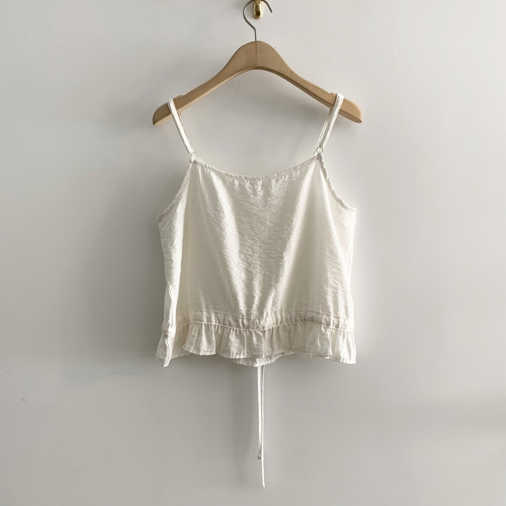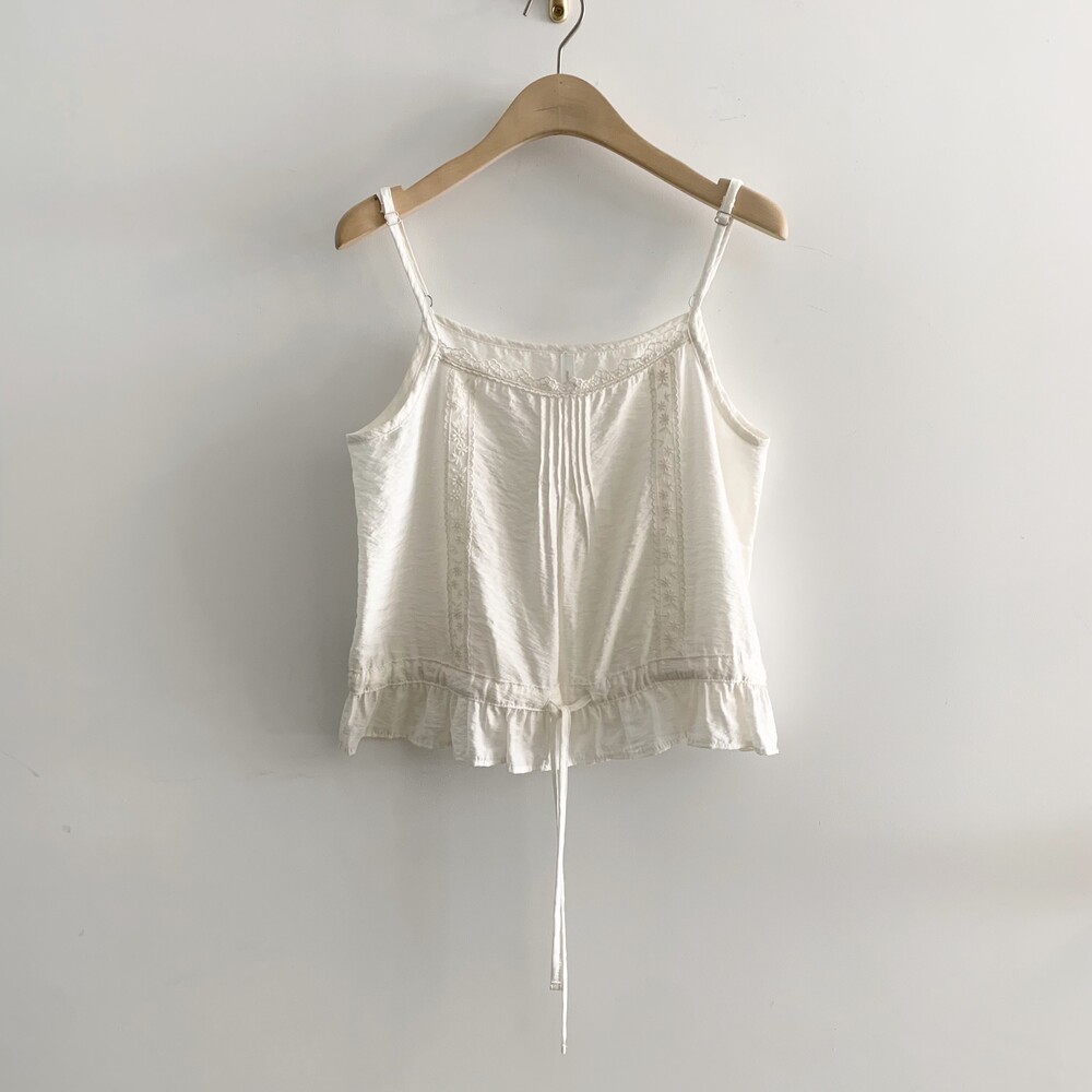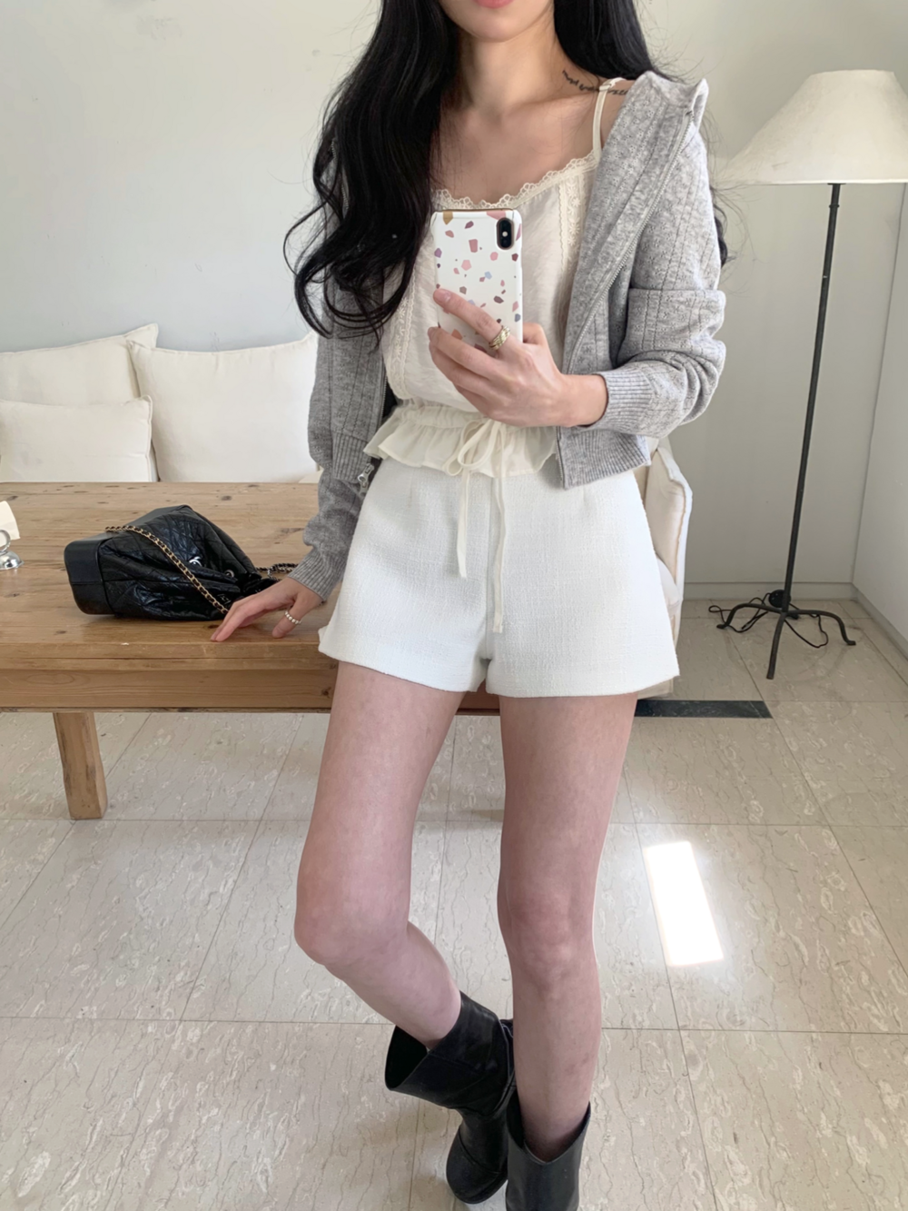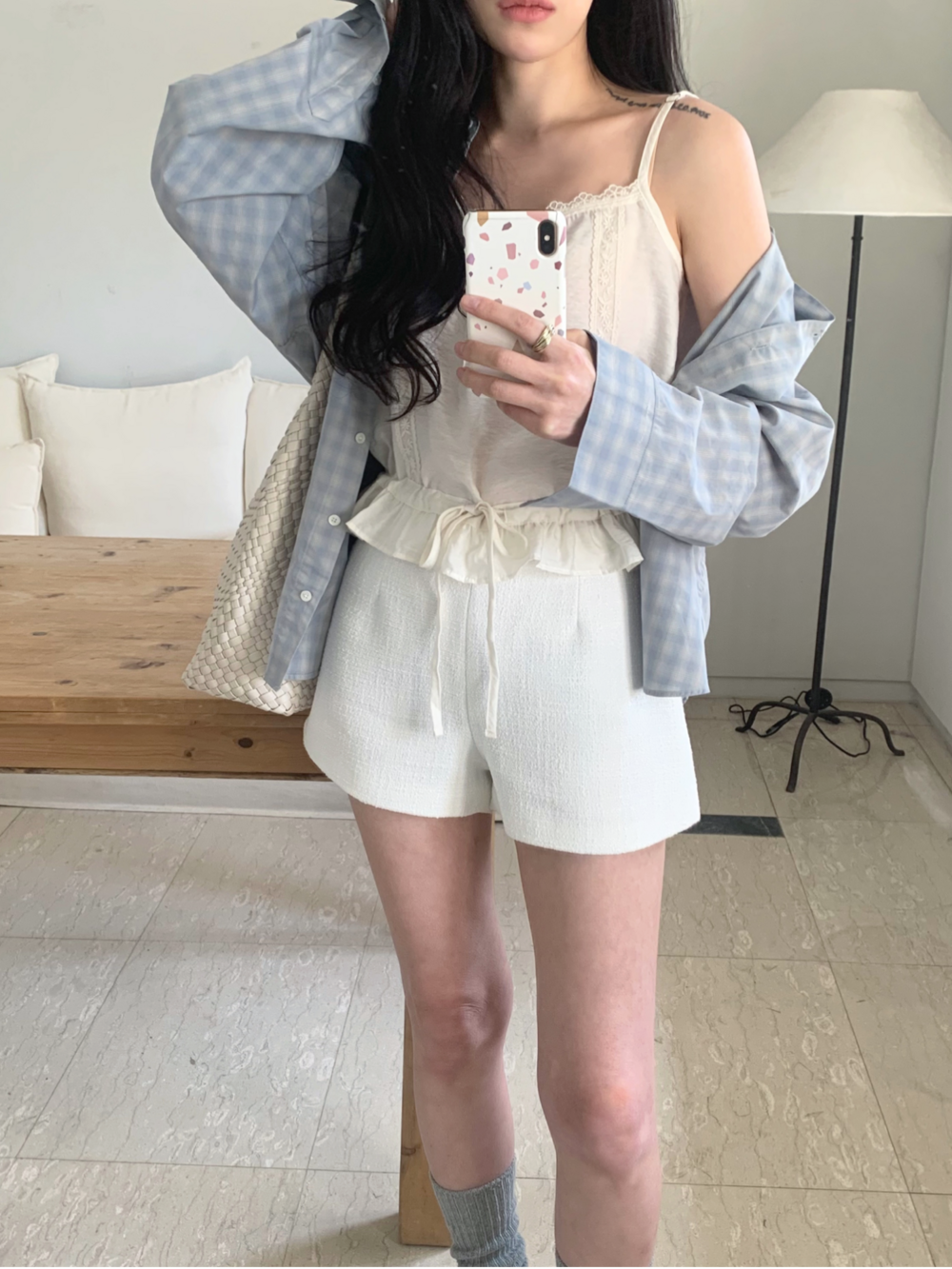 레이스 트리밍과 하단에 사이즈 조절이 가능한 리본 스트링이 더해져