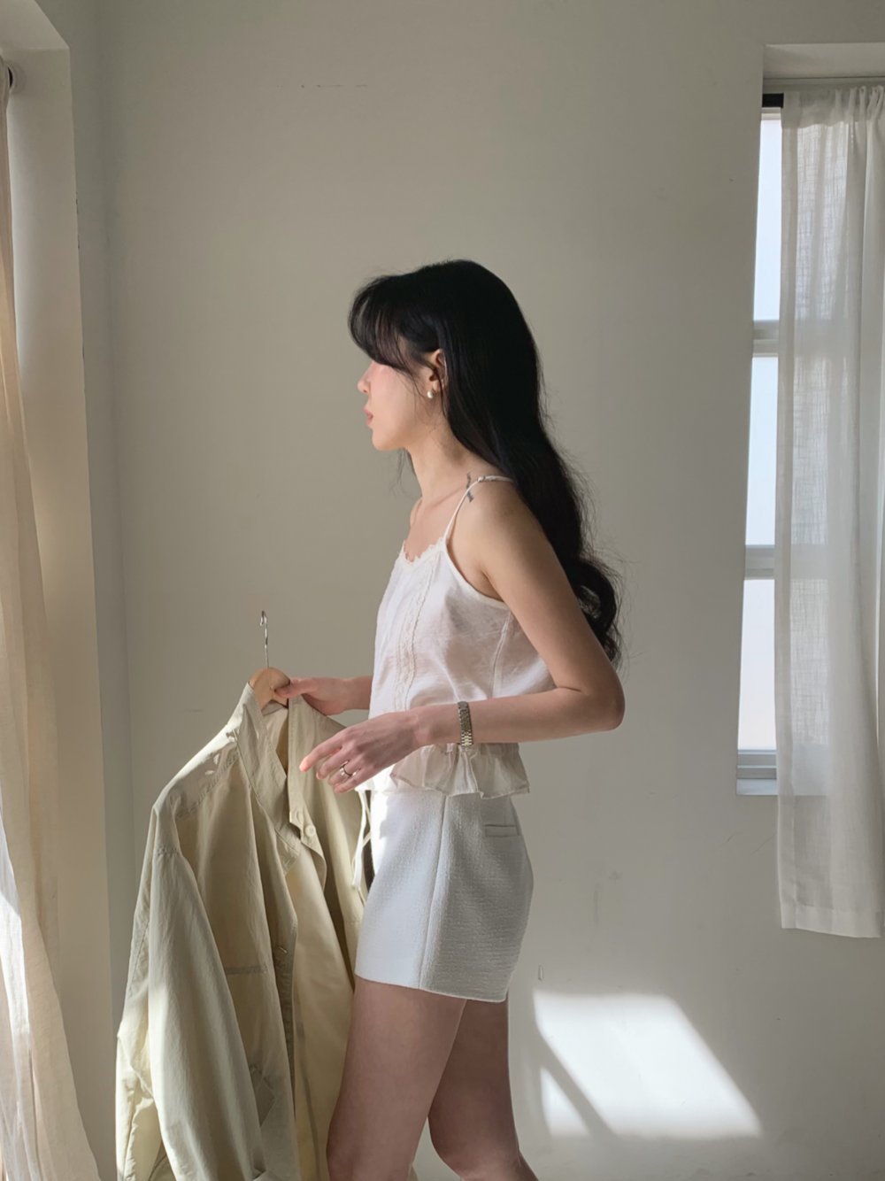 바디에 매끄럽게 닿는 소재로 차르륵 유연하게 떨어지는 실루엣이 매력적이며