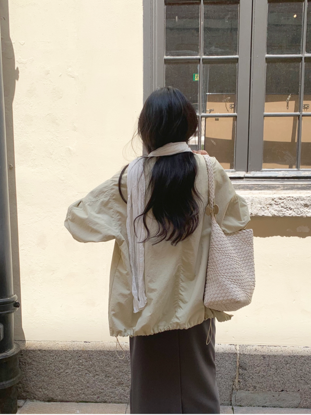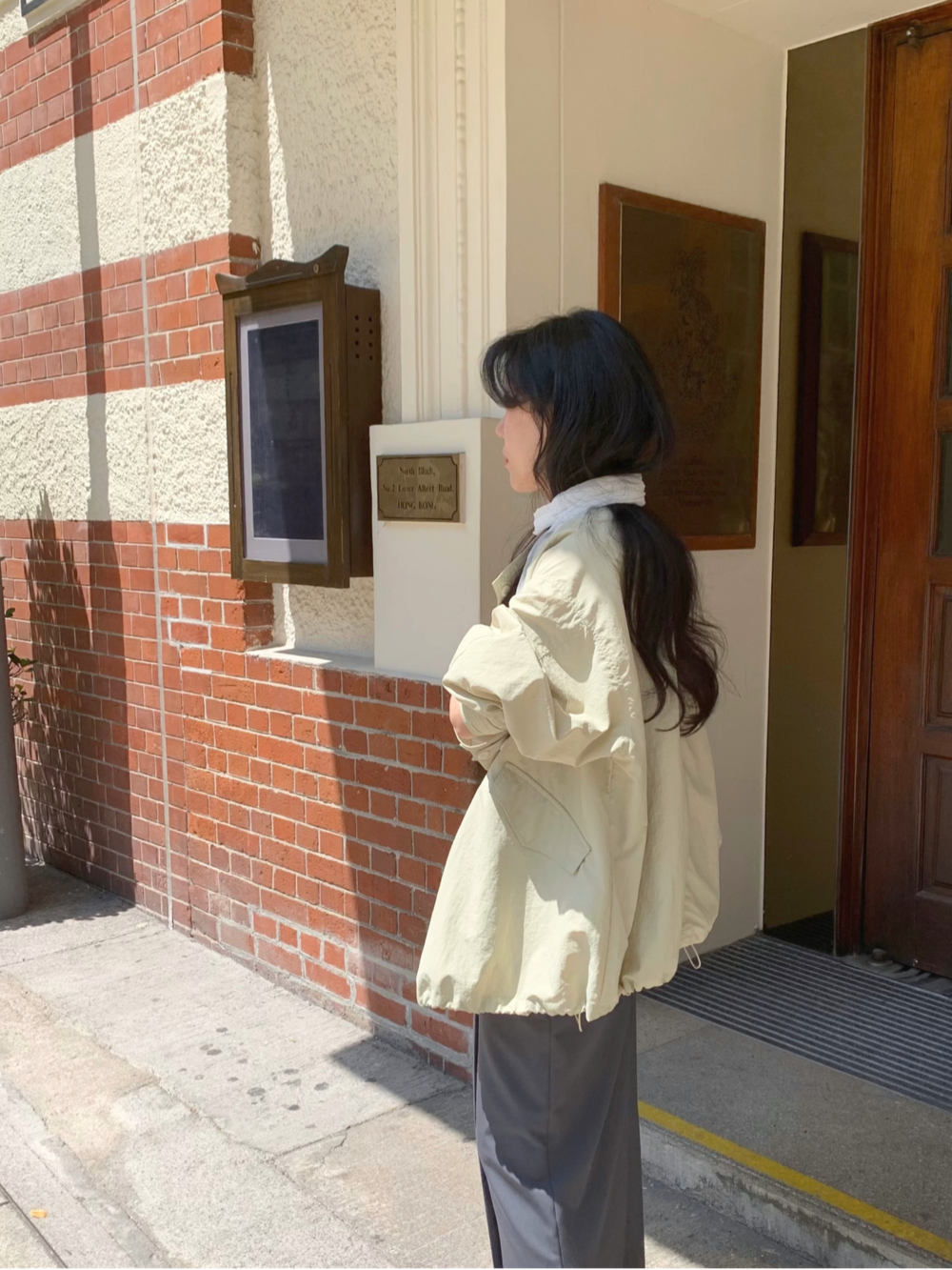 내추럴한 아웃핏 무드로 가볍게 착용하기 좋은 윈드 자켓입니다.