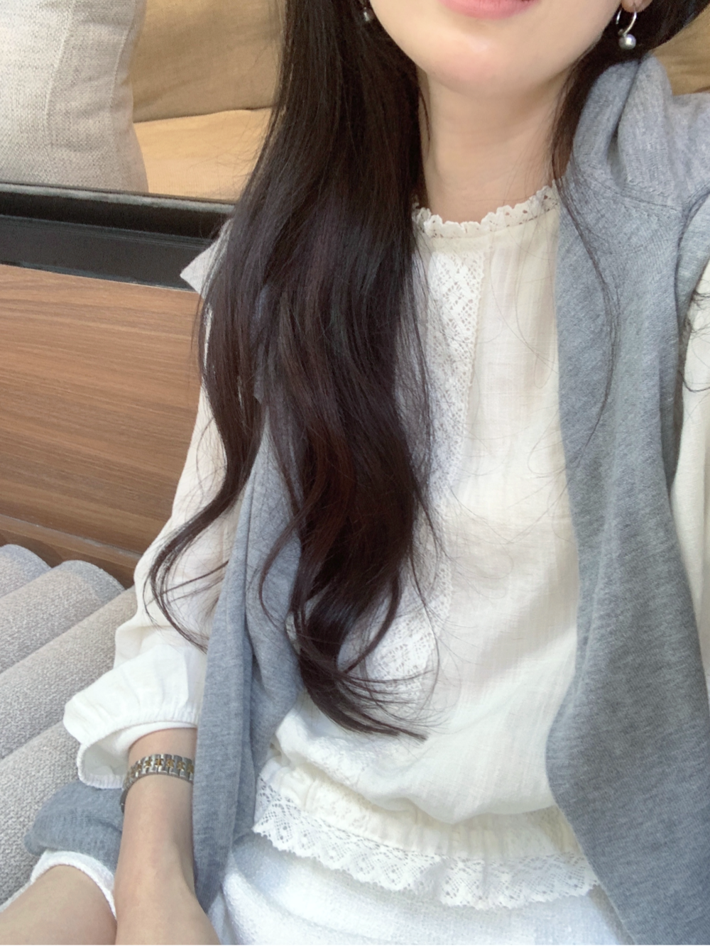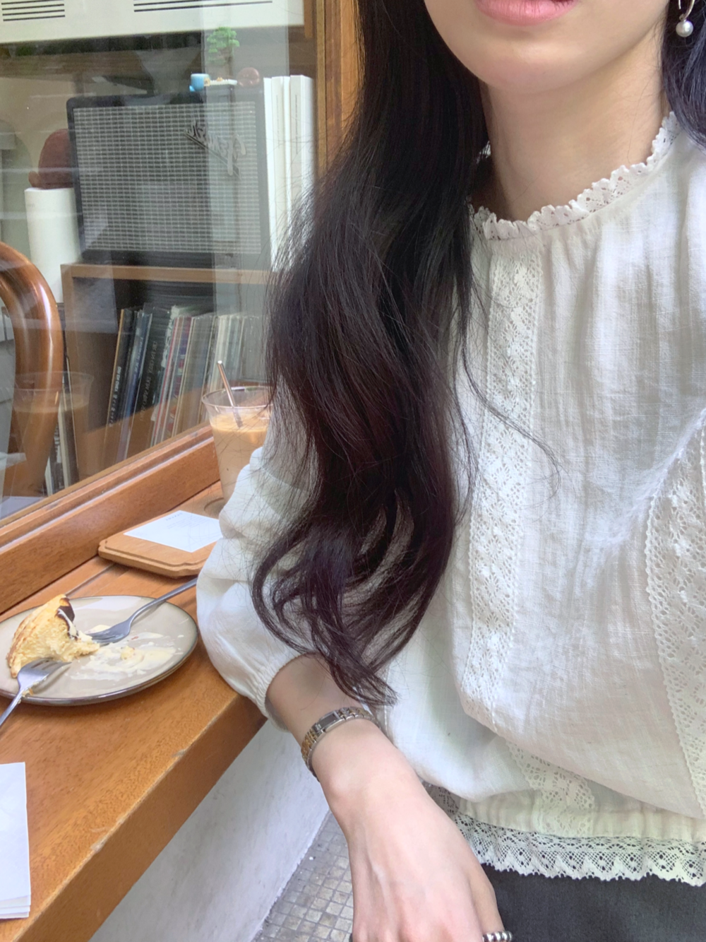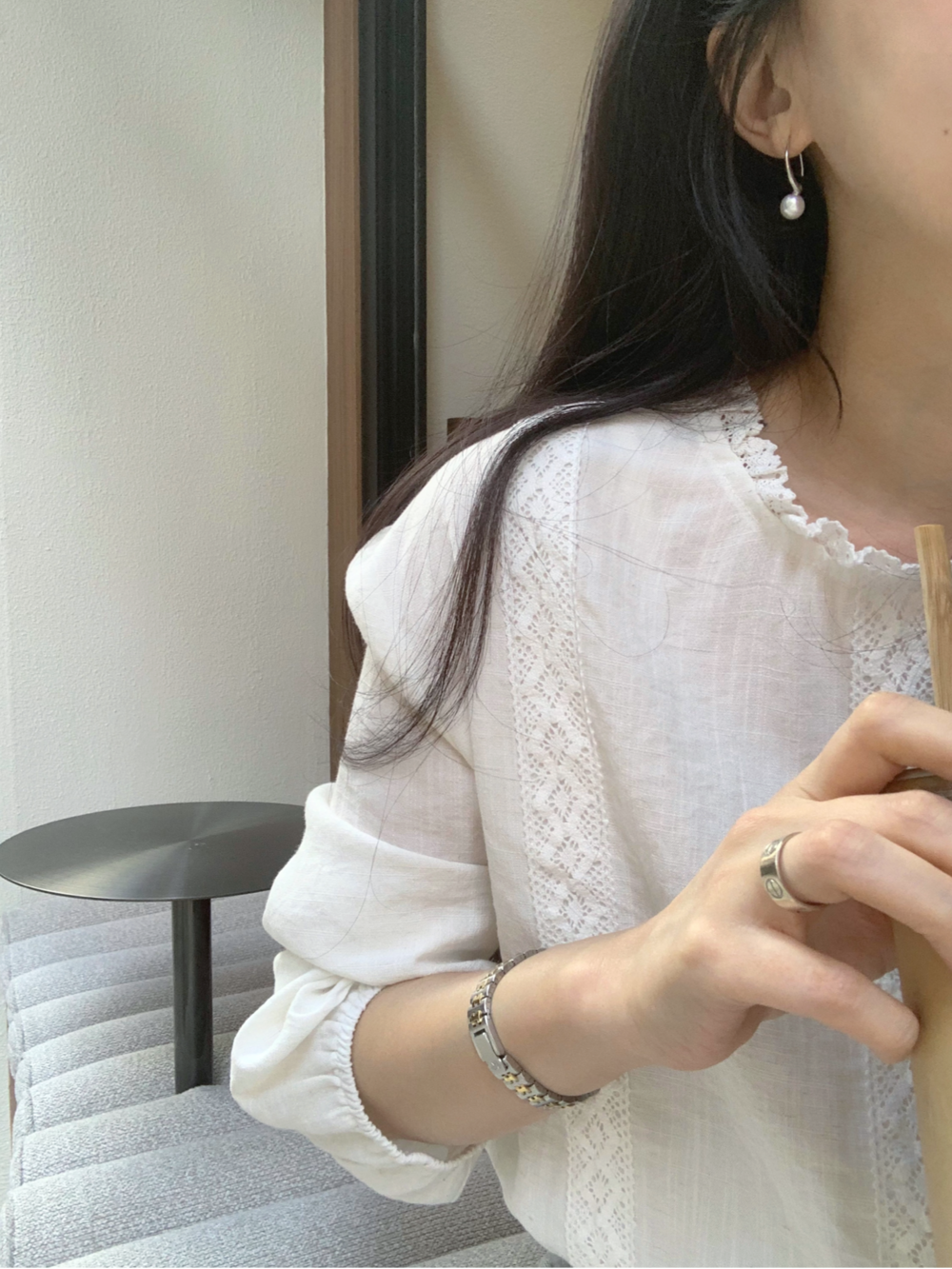 몸판으로 이어지는 레이스 디테일은 은은하게 포인트를 주어