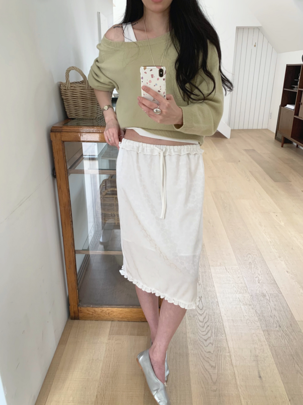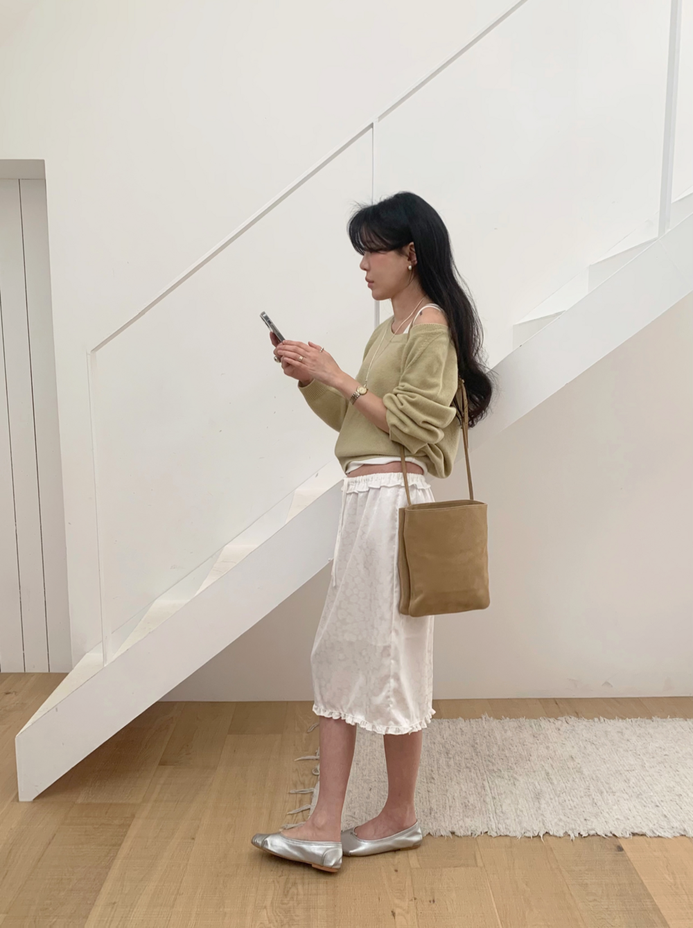 적당한 기장감으로 편안하면서도 여리한 무드로 연출되며