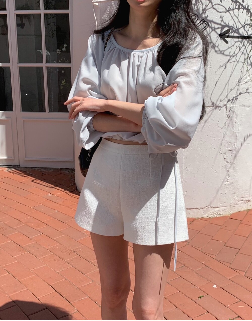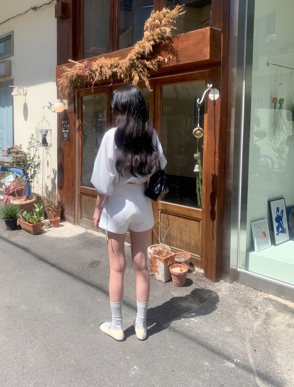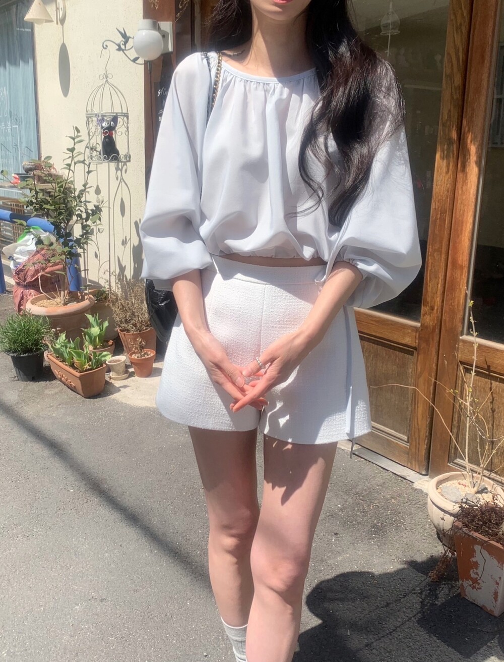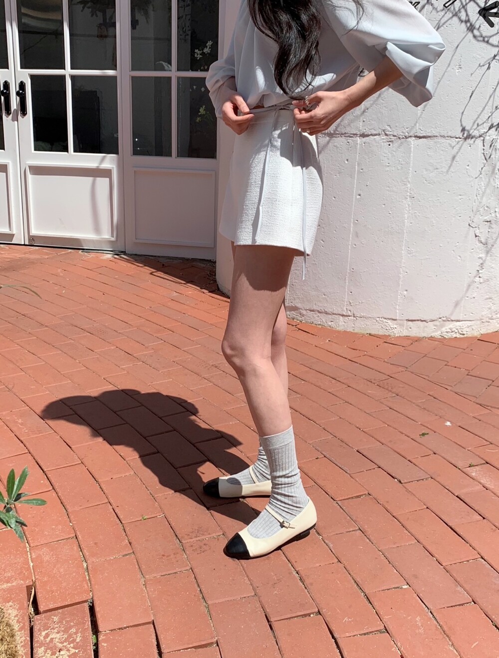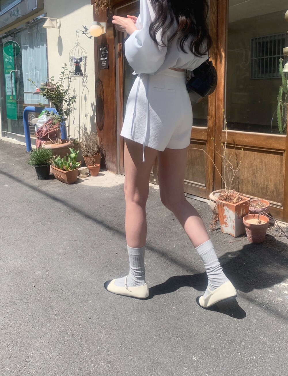 기장감이 숏함에도 힙이 아슬하게 보이는 실루엣이 아닌