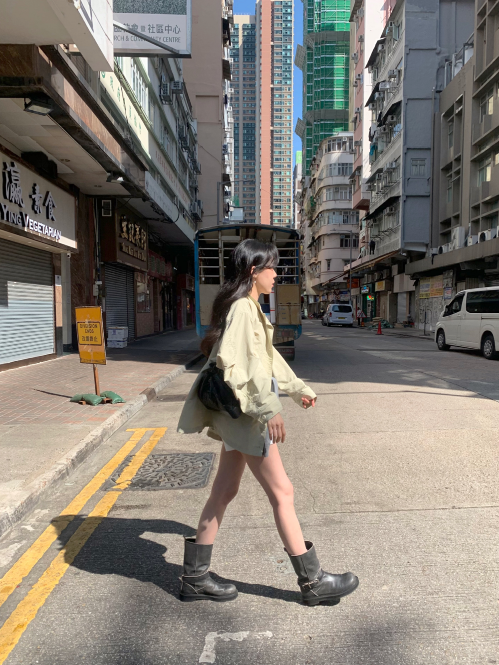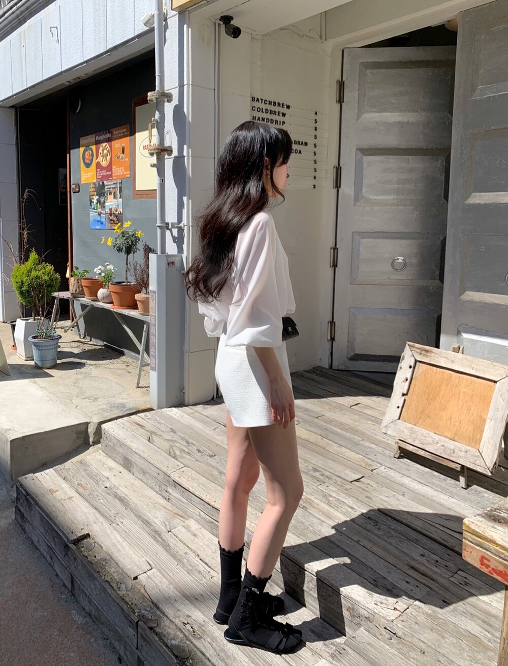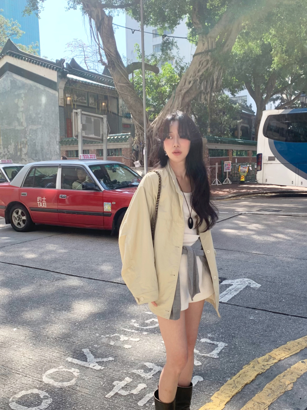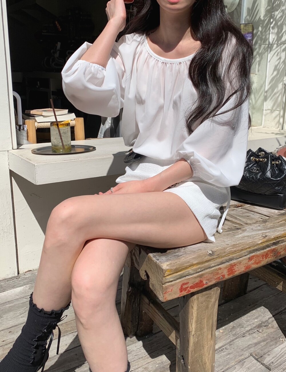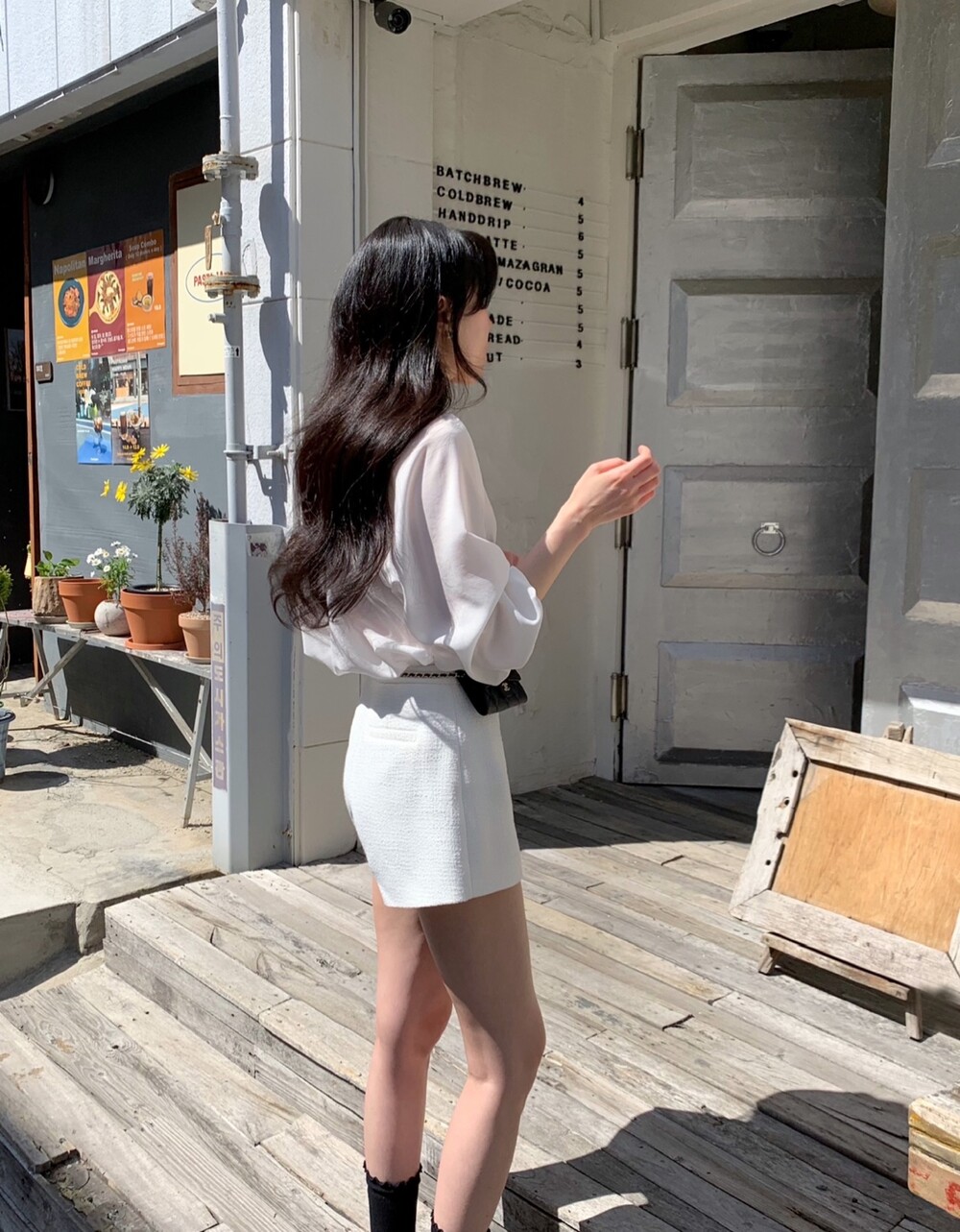 기장감이 숏함에도 힙이 아슬하게 보이는 실루엣이 아닌