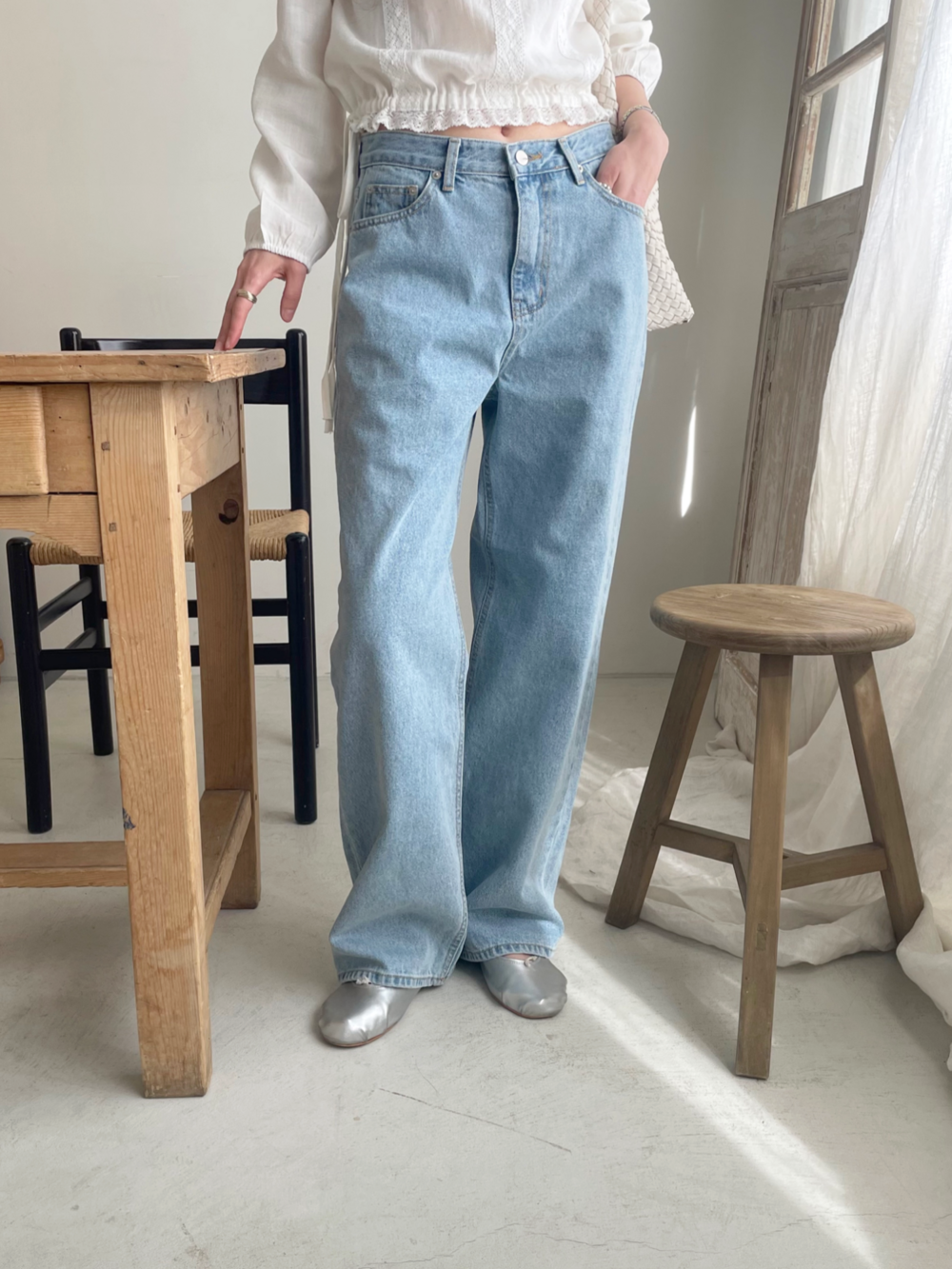 과한 워싱없이 균일한 라이트 블루 컬러로 클래식함이 느껴지며