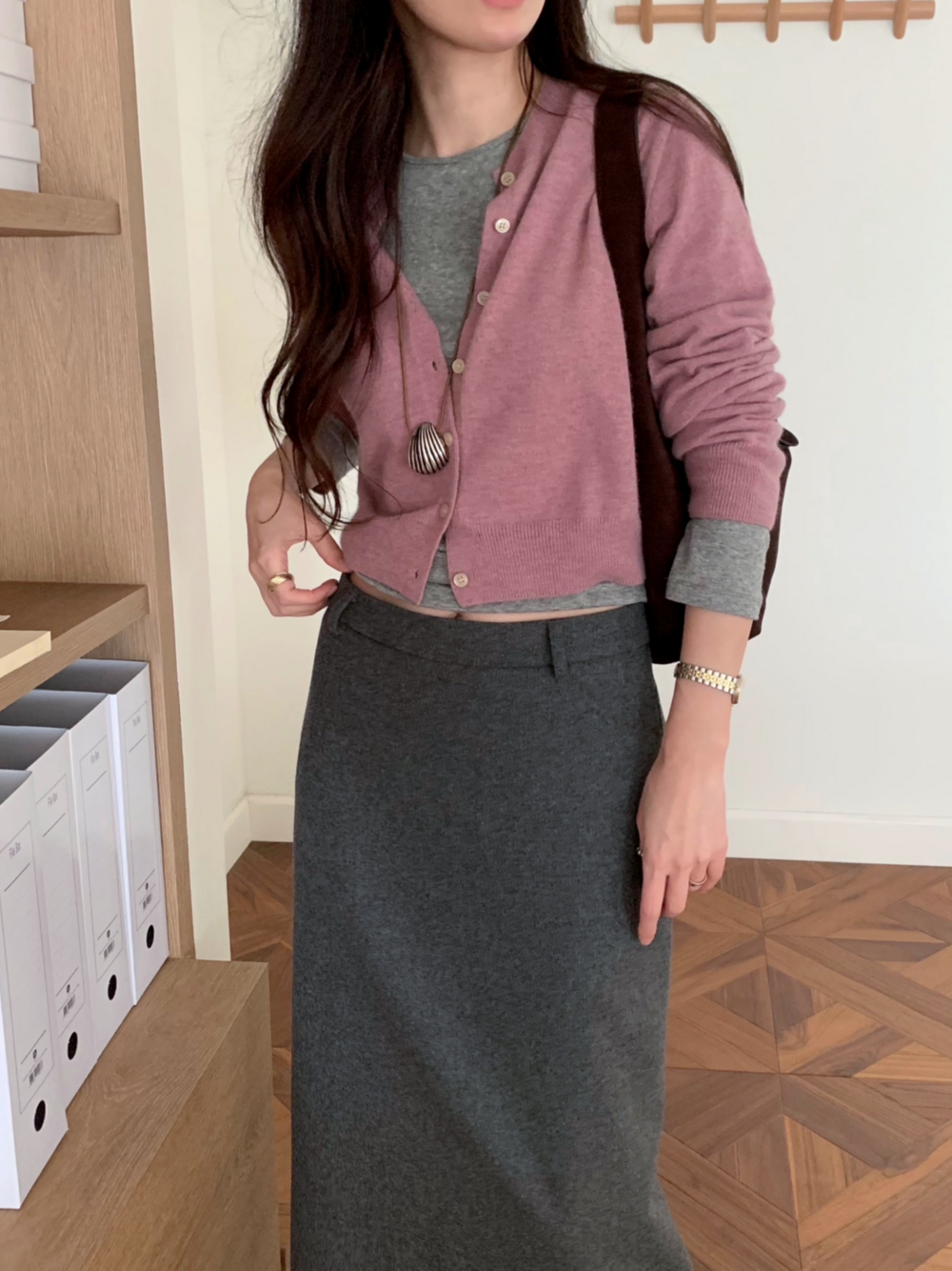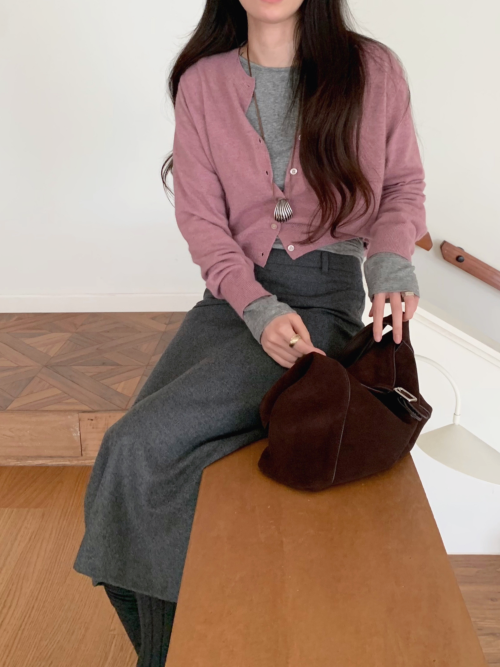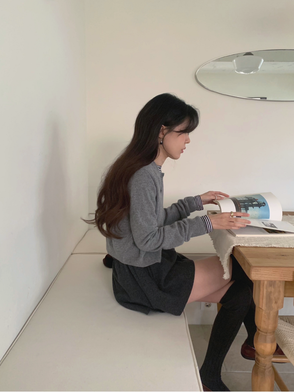 단정한 분위기를 완성해주는 담백한 라운드 가디건으로