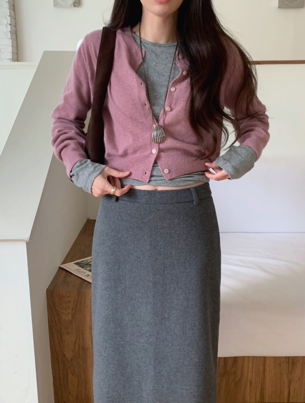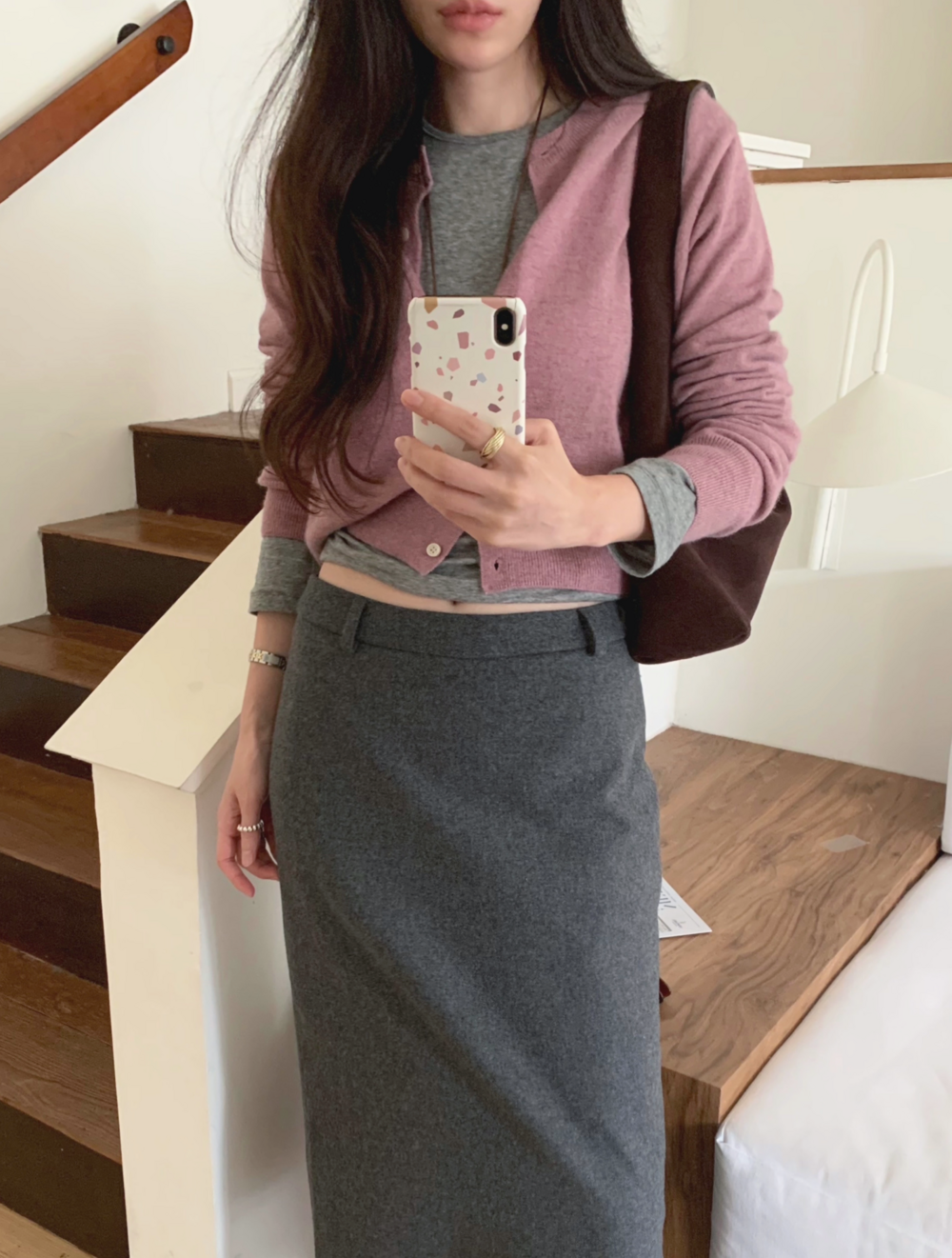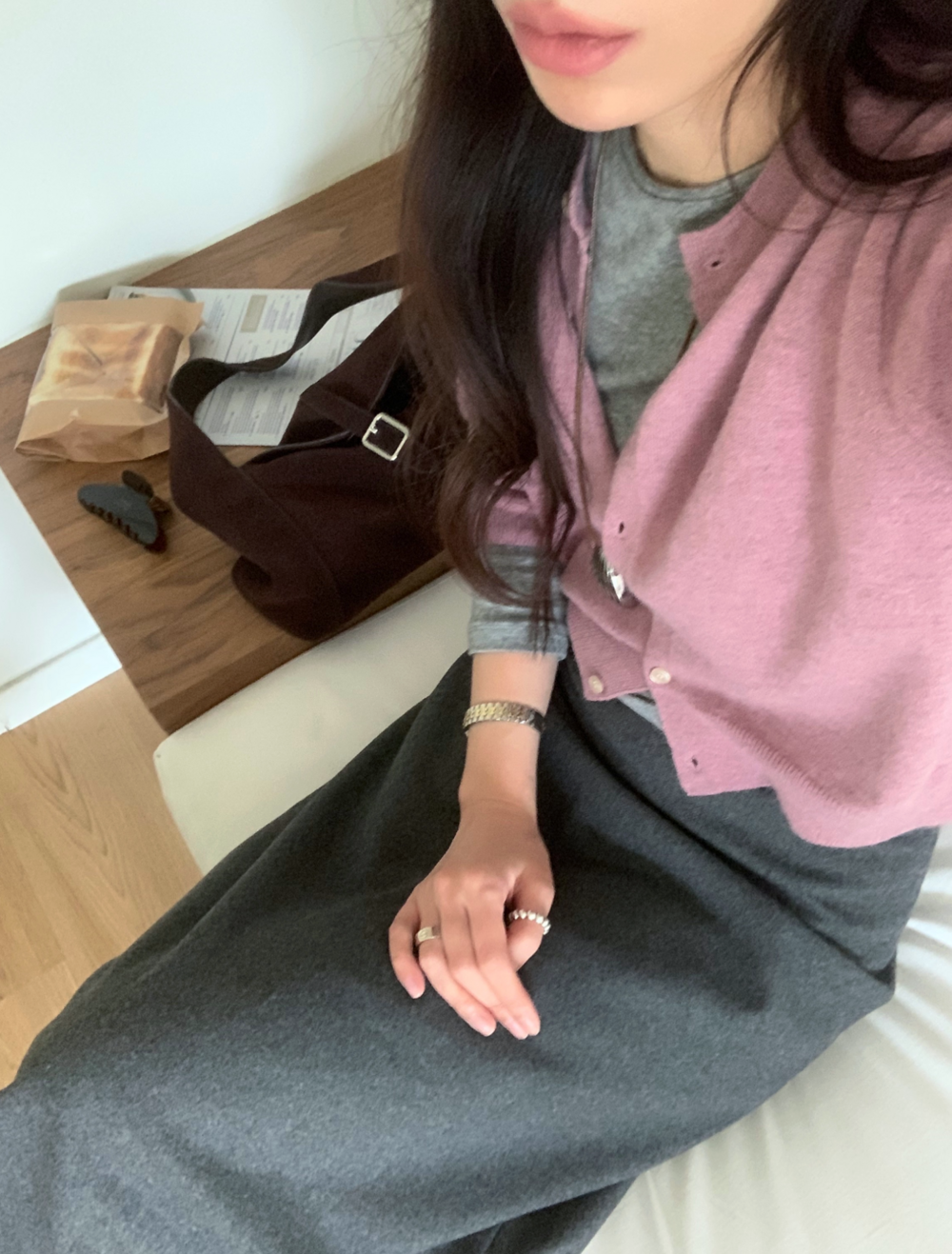 단정한 분위기를 완성해주는 담백한 라운드 가디건으로