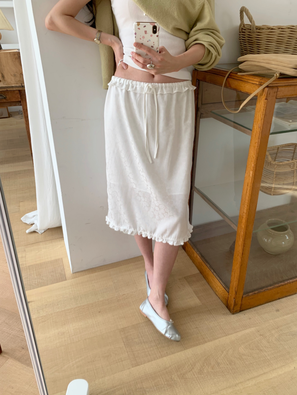 허리 밴딩과 밑단에 사랑스럽게 이어진 프릴 디테일로