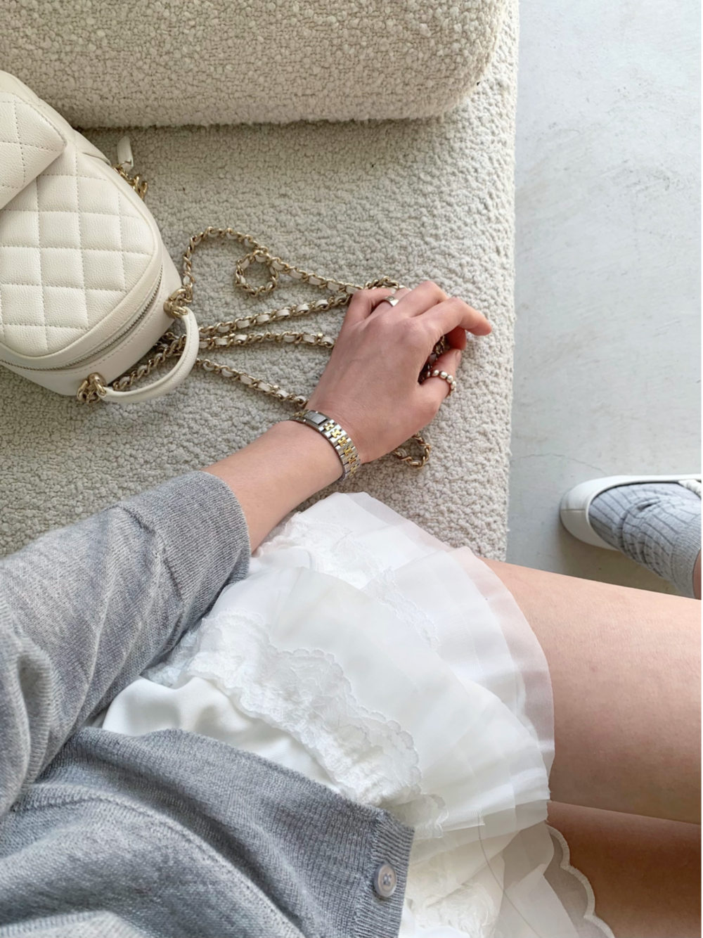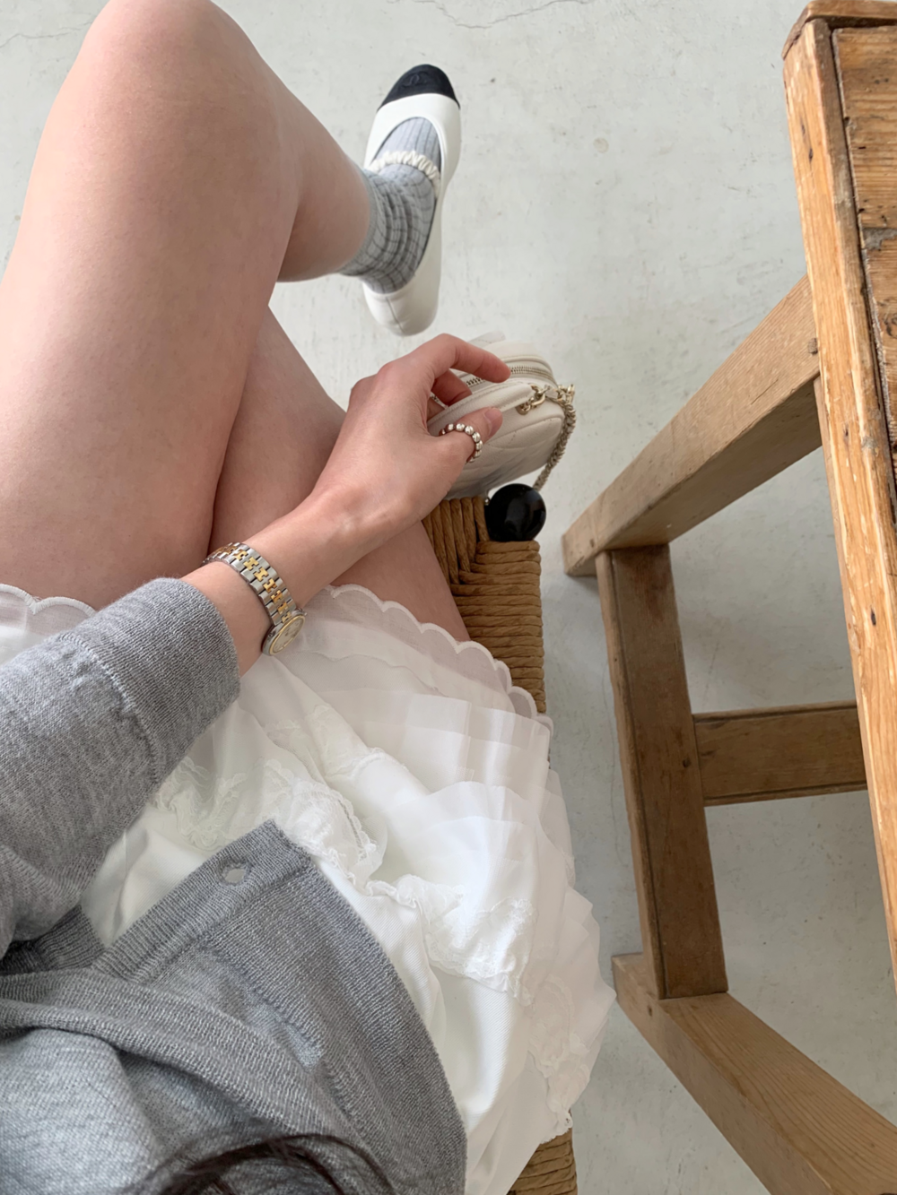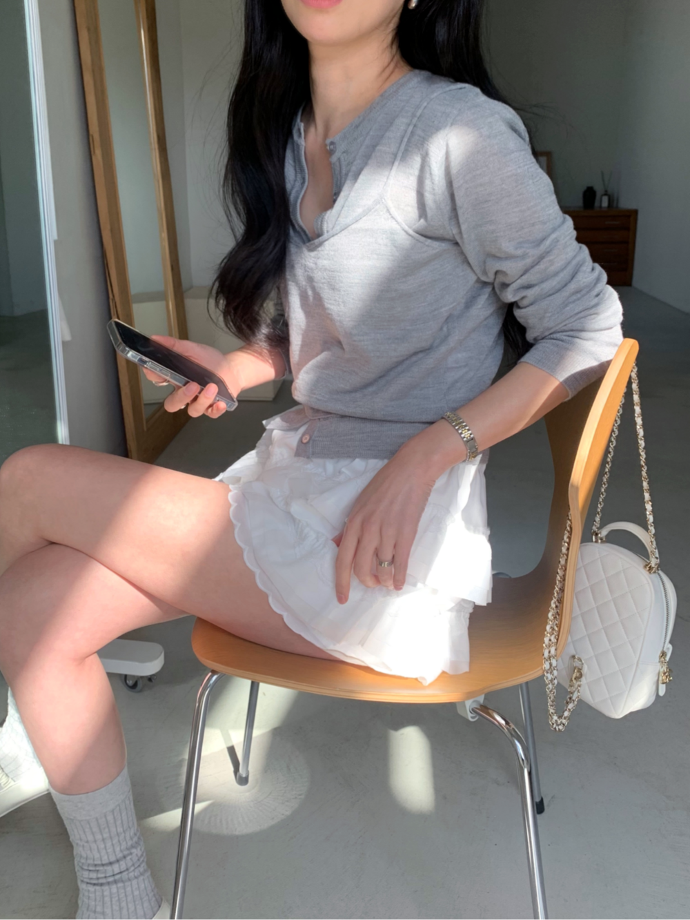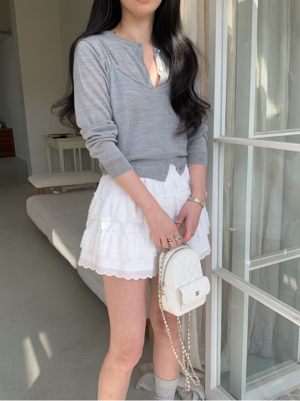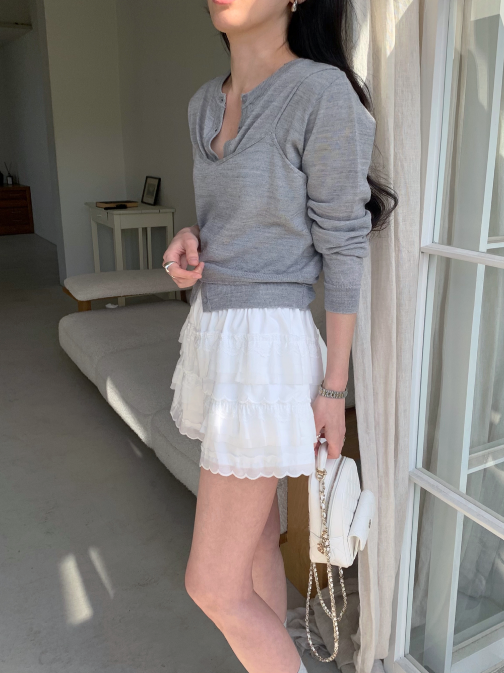 사진에는 뷔스티에를 가디건 밖으로 착용해보았지만