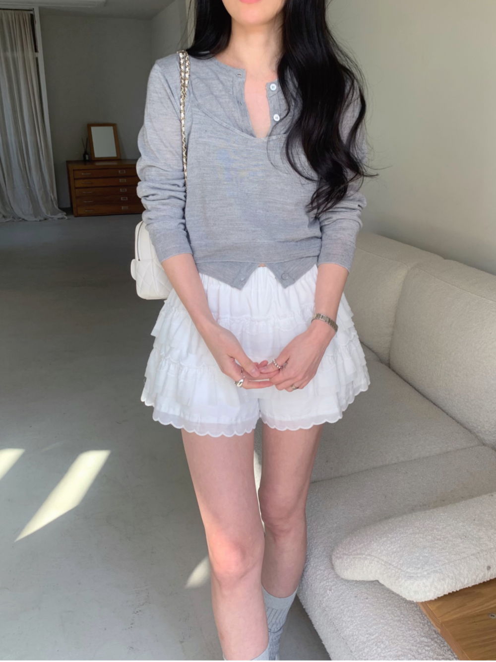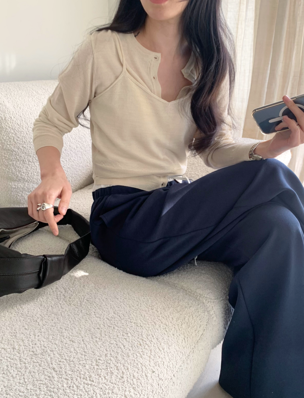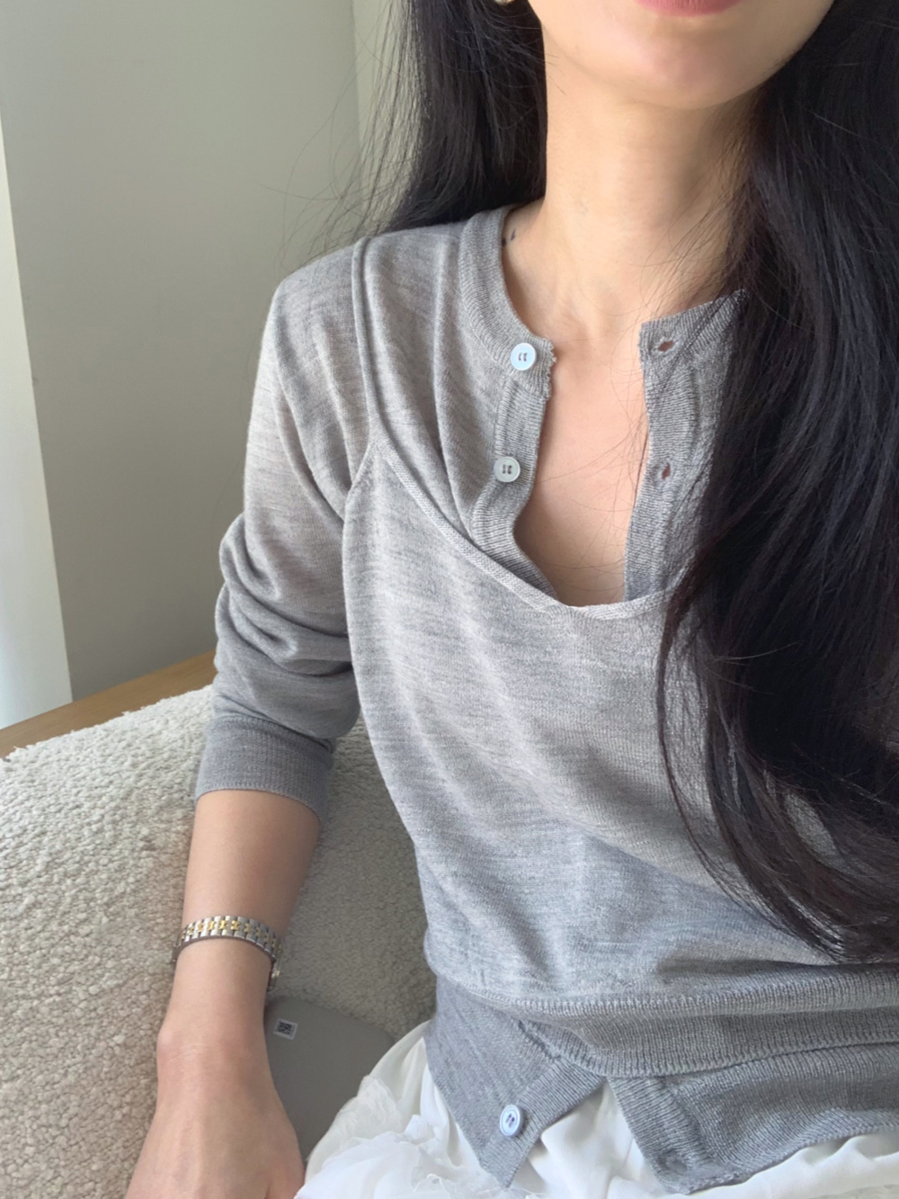 가디건 또한 단독으로 착용하기 좋은 디자인으로