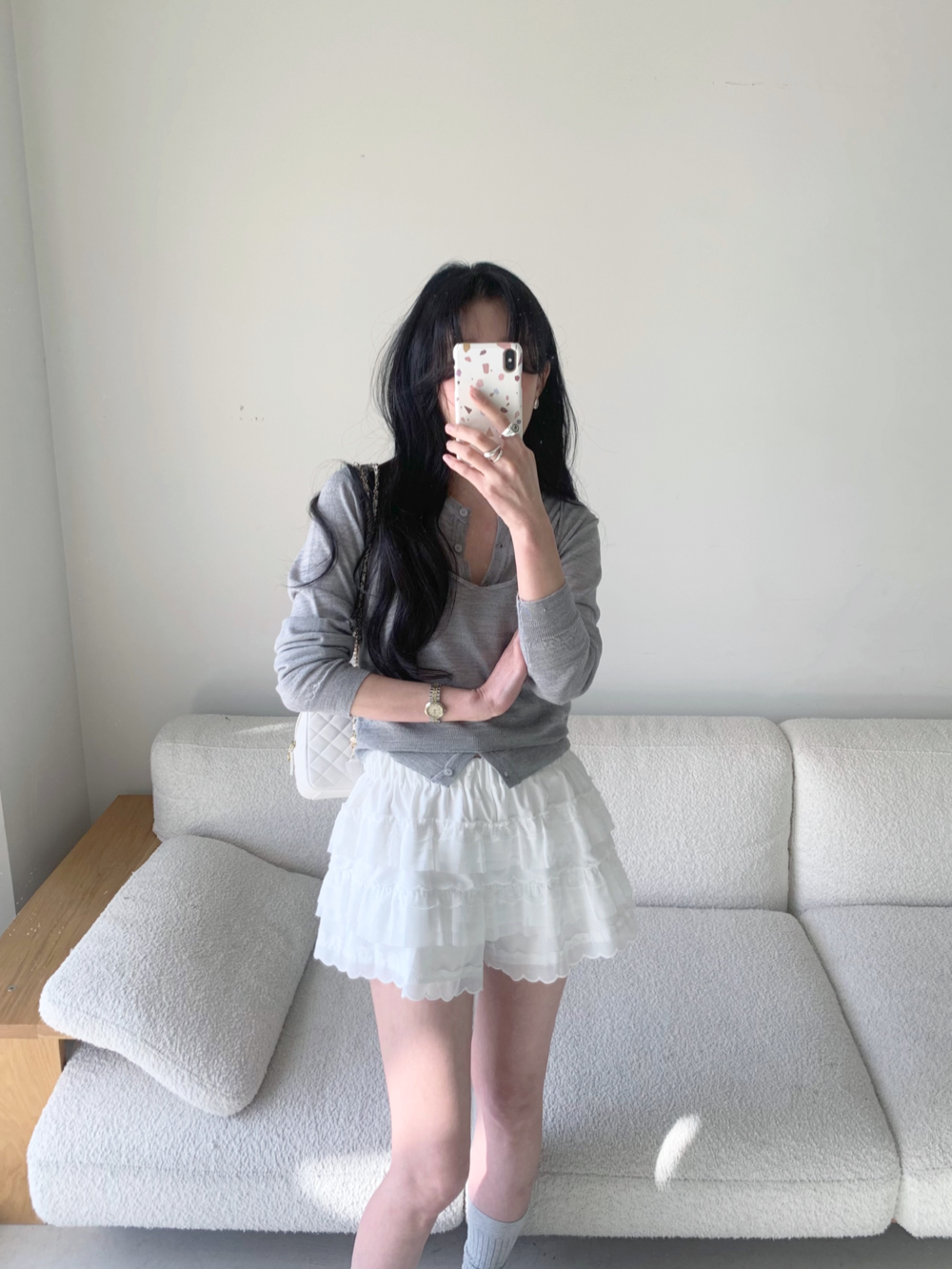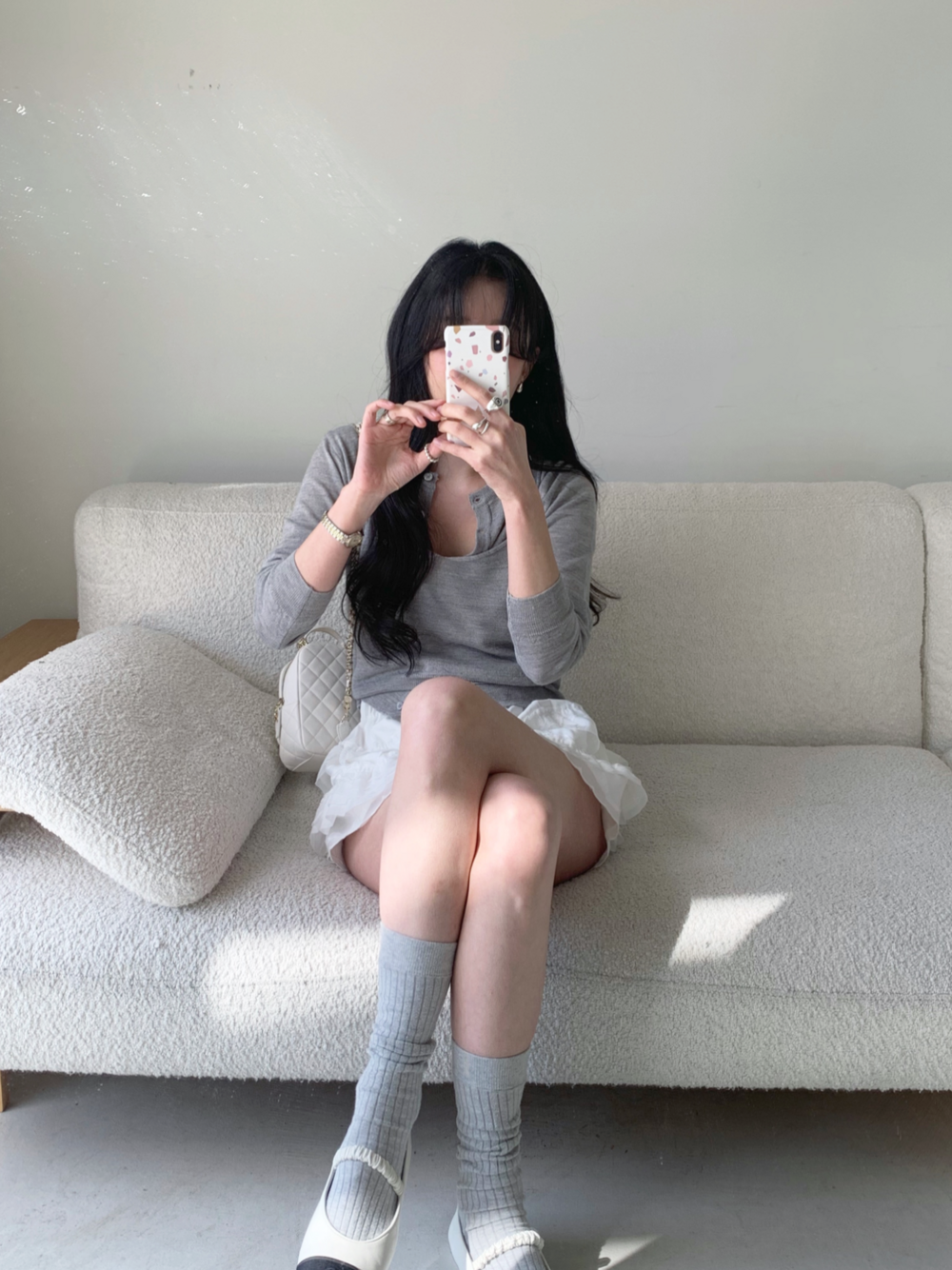 은은하게 분위기를 잡아주고 오래 입어도 질리지 않는 그레이 컬러로 보여드리며