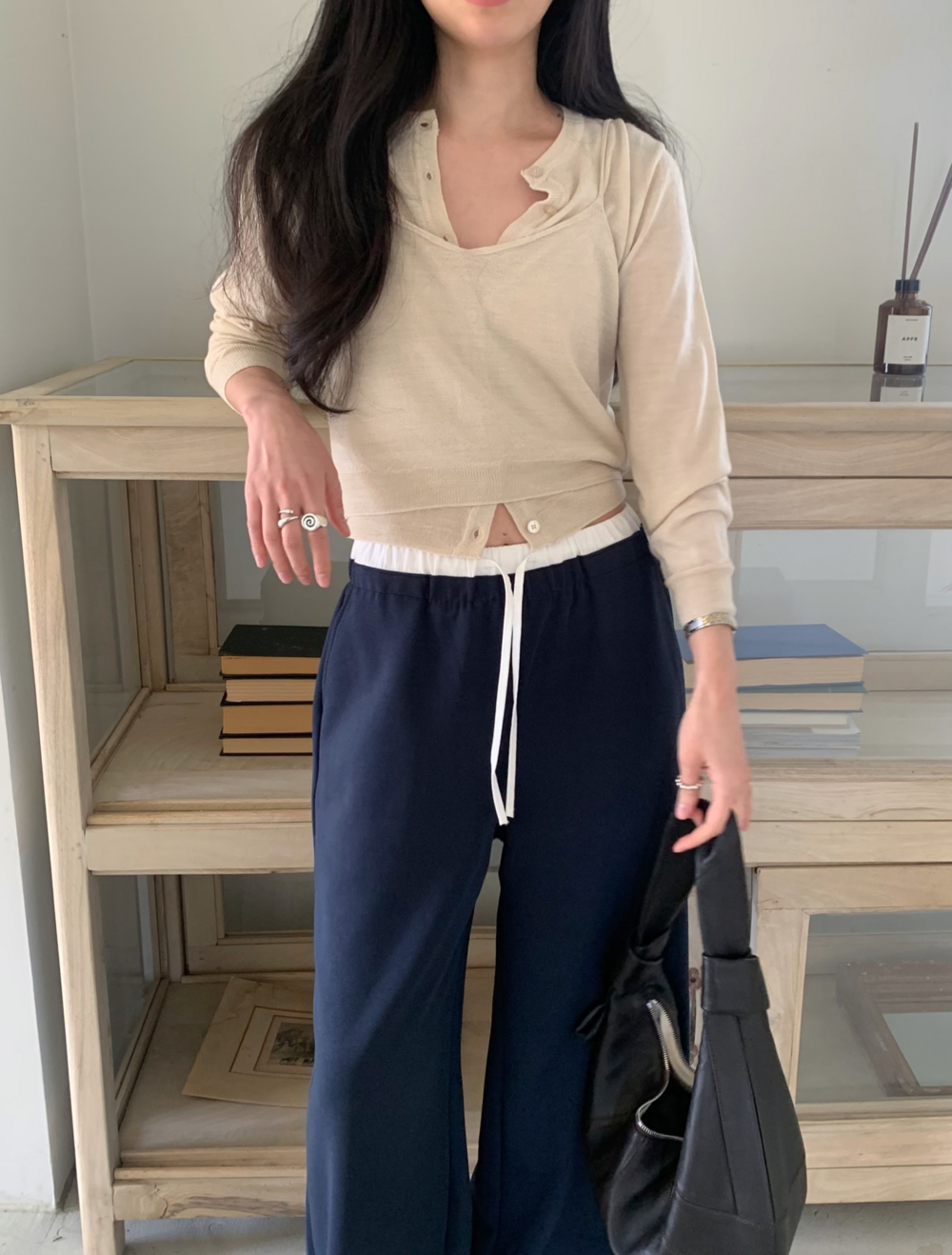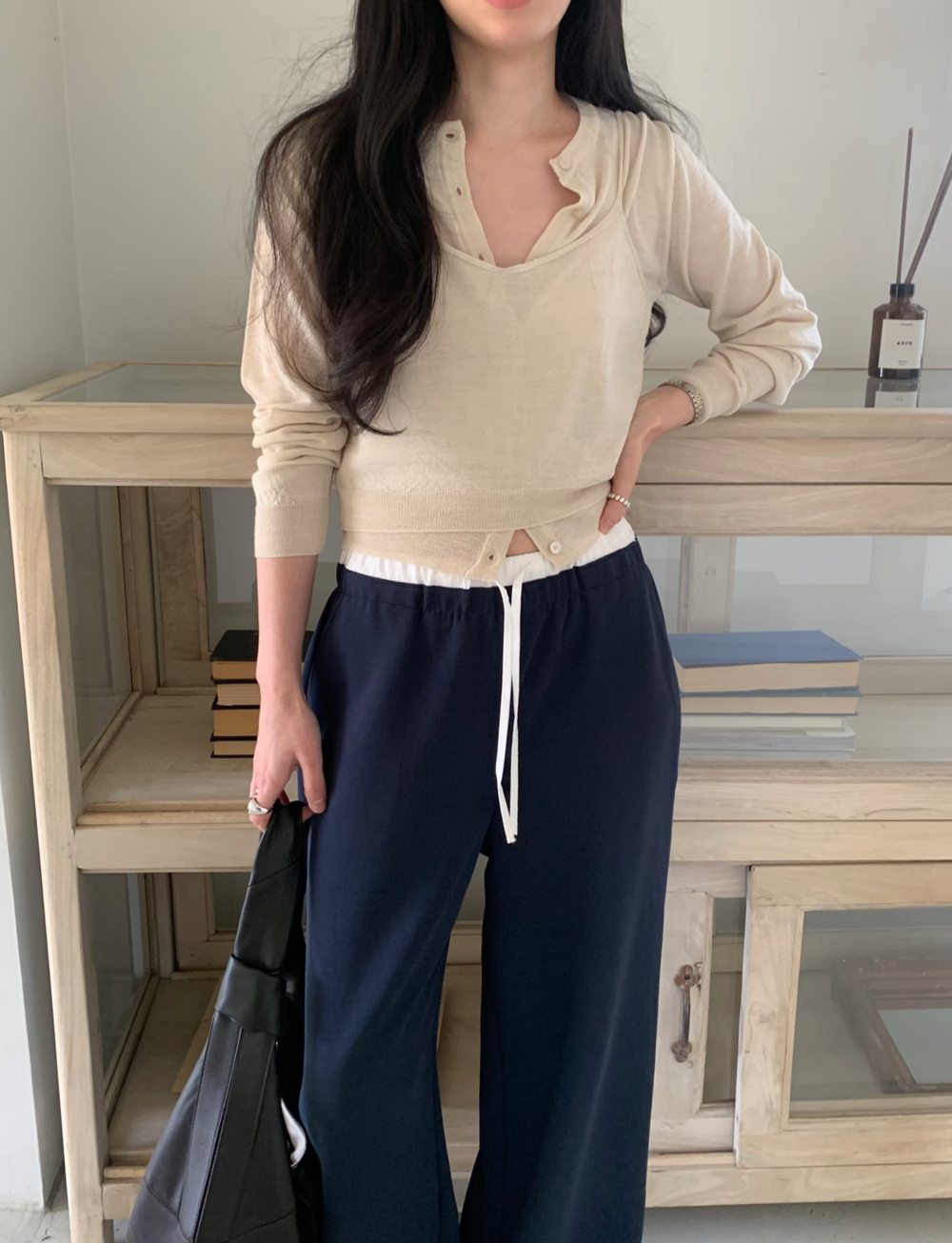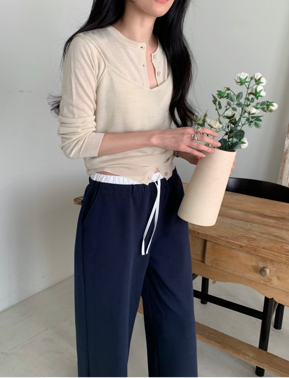 가디건 안으로 착용해도 좋은 디자인이랍니다.