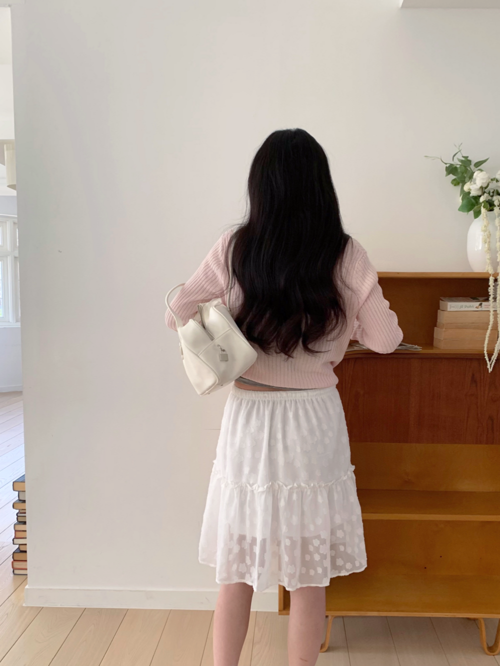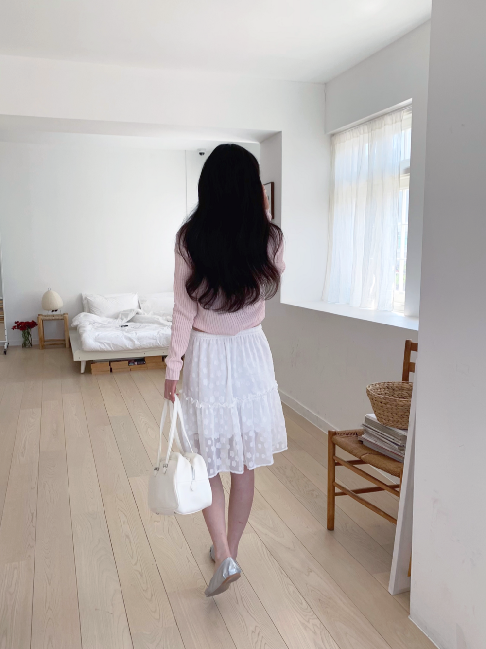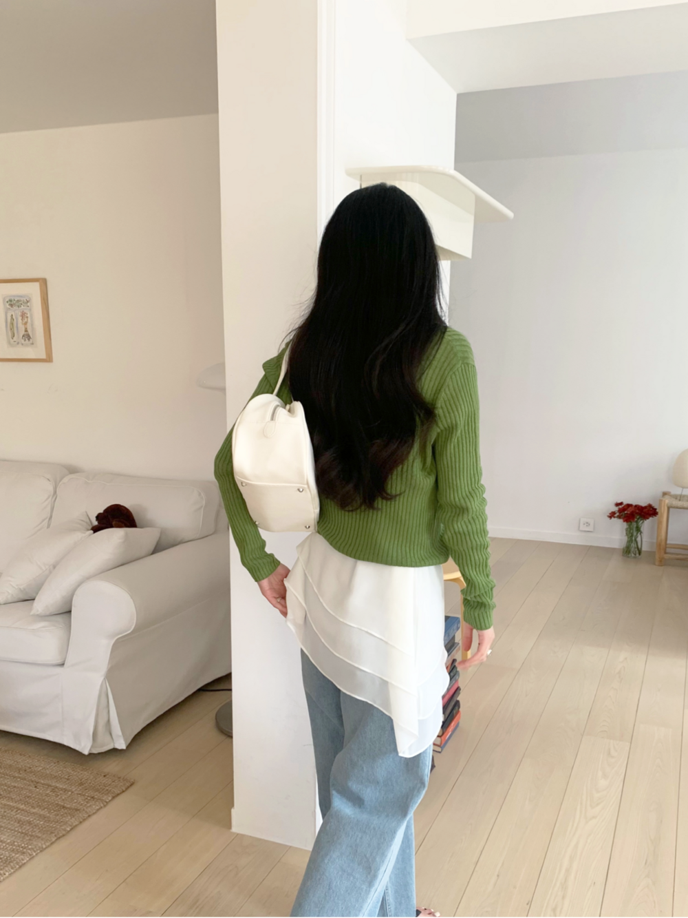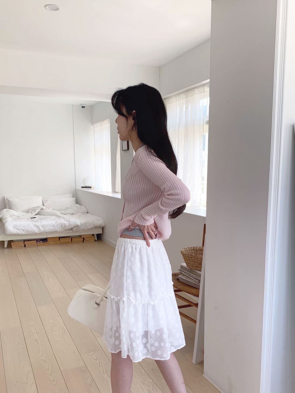 잔잔한 골지 짜임으로 슬림한 실루엣을 만들어주며